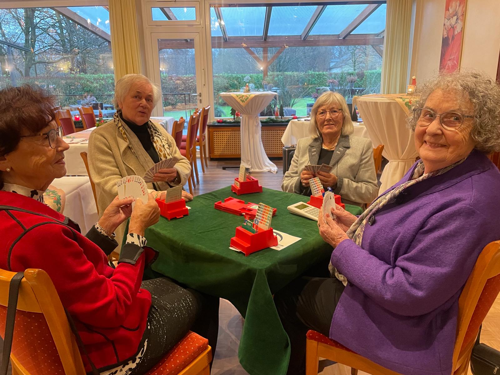 Rückblick auf unsere Weihnachtsfeier Wir haben unsere Weihnachtsfeier im Restaurant Strehl gefeiert. Die Räume waren wunderschön und stimmungsvoll weihnachtlich geschmückt. Nach einem vielseitigen Bratkartoffelbuffet spielten wir ein Bridgeturnier, das von einer gemütlichen Kaffeepause mit selbstgebackenen Keksen unterbrochen wurde. Vielen Dank an alle Spender! Um 18:00 Uhr fand die Siegerehrung statt, und für jeden Spieler gab es liebevoll verpackte kleine Geschenke. Anschließend ließen wir den Abend bei einem gemütlichen Beisammensein ausklingen, bei dem wir noch einige sehr nette kleine Geschichten hören konnten. Ein herzliches Dankeschön an unseren Festausschuss! Marita Struck ![]() ![]() ![]() ![]() ![]() ![]() ![]() | ||